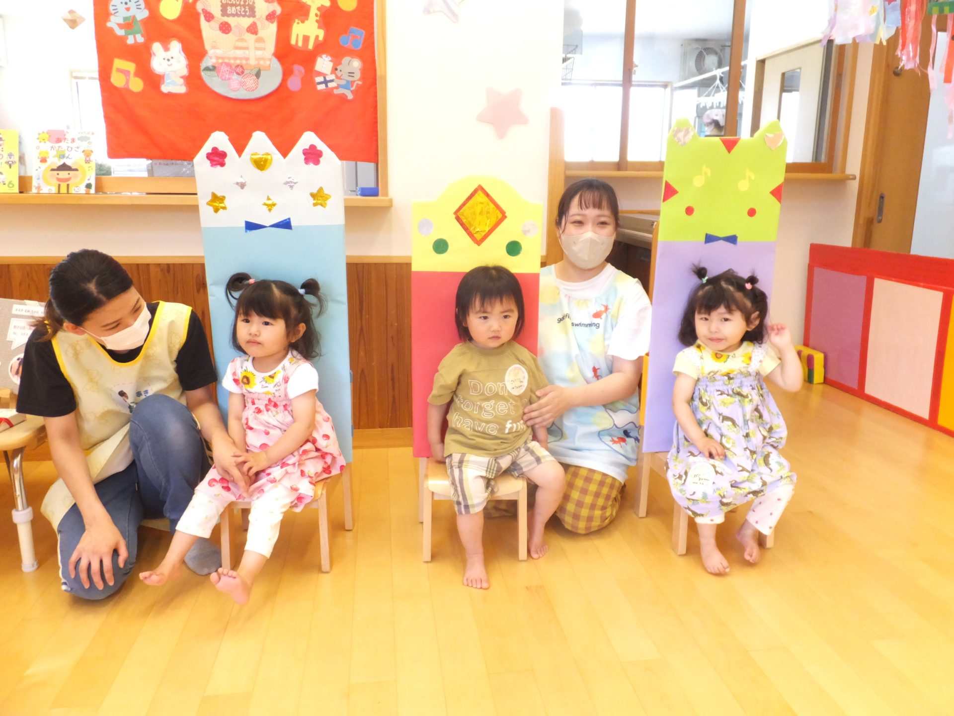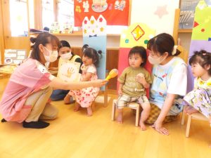 7/6(木)誕生日をむかえた3名の子ども達をお祝いする誕生会がありました…