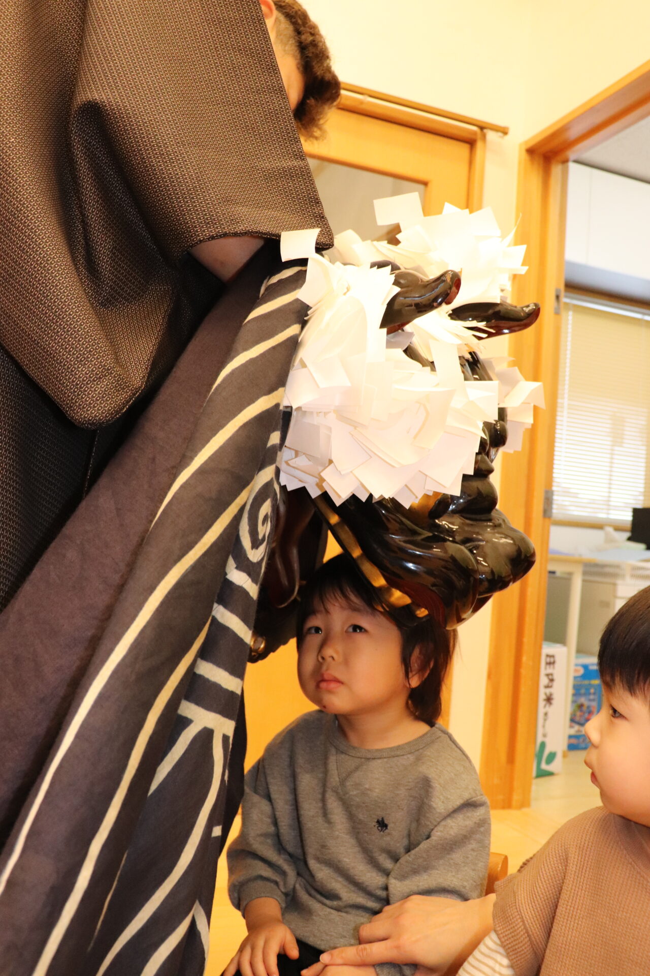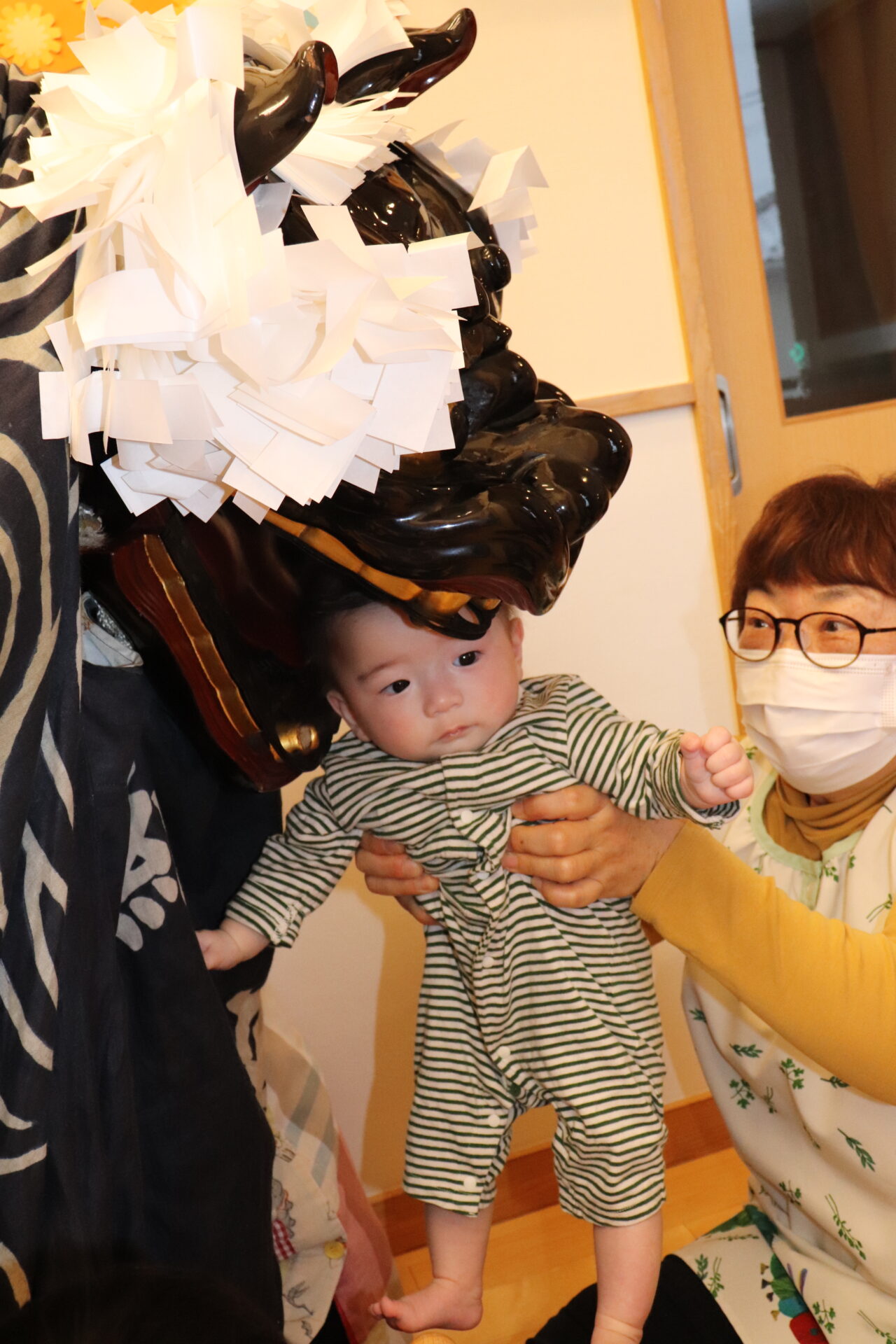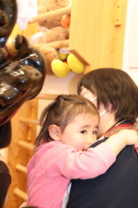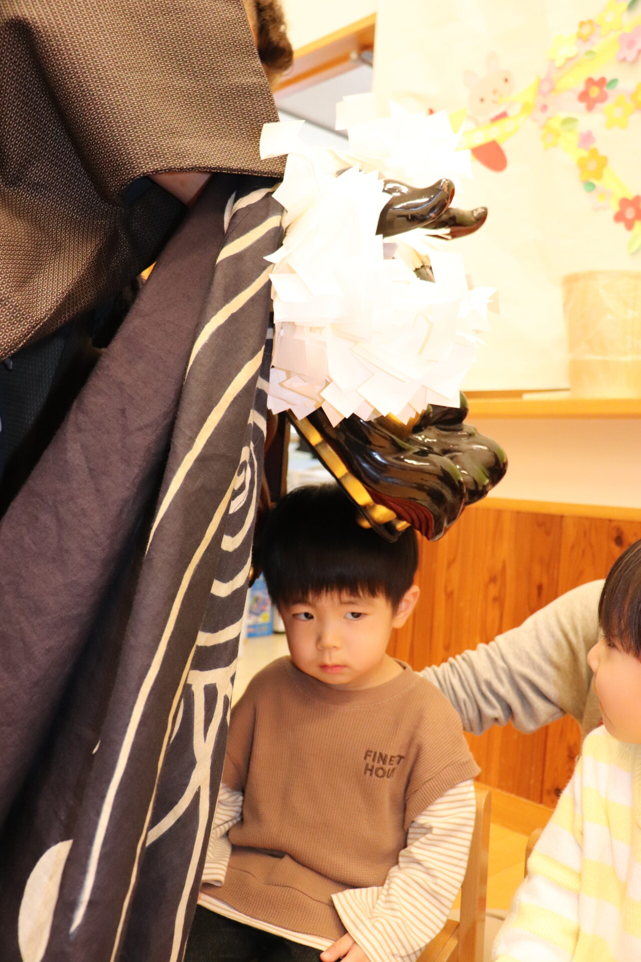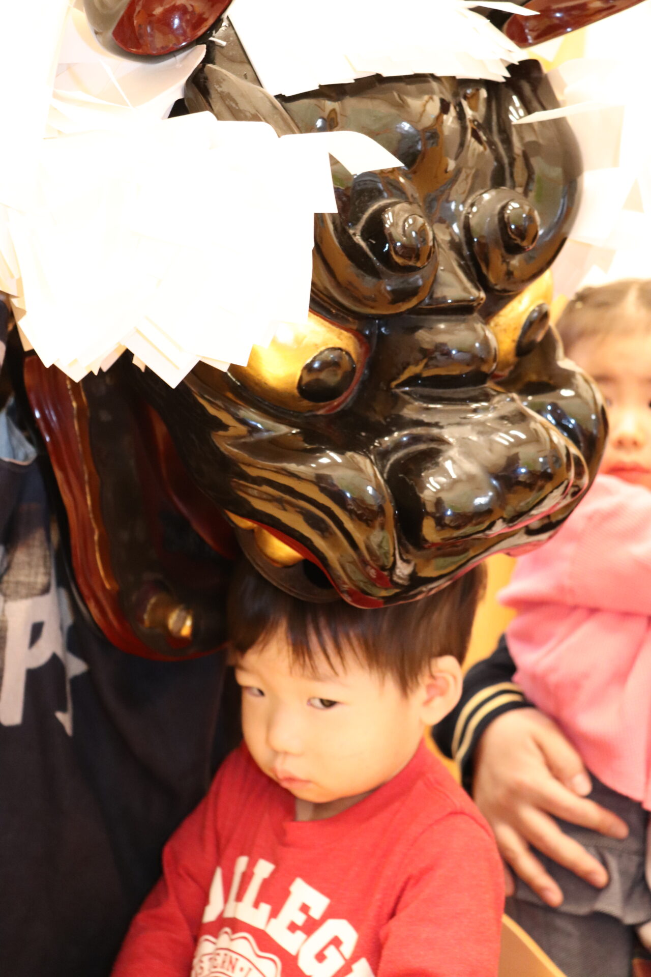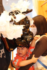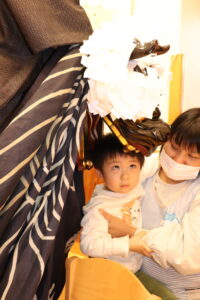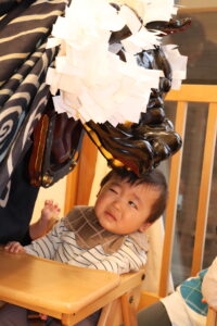 子ども達、職員、一人ひとりの頭を噛み、