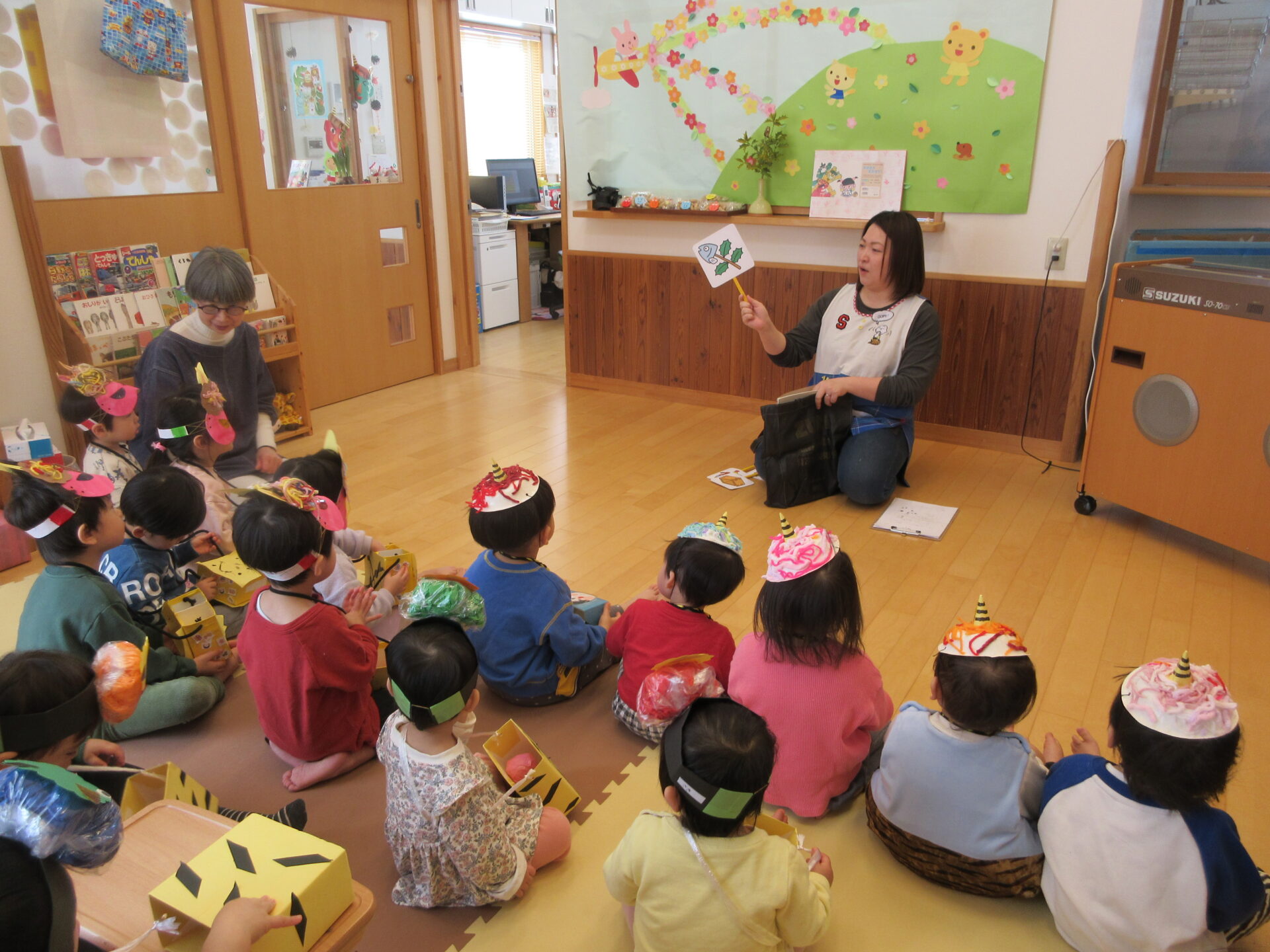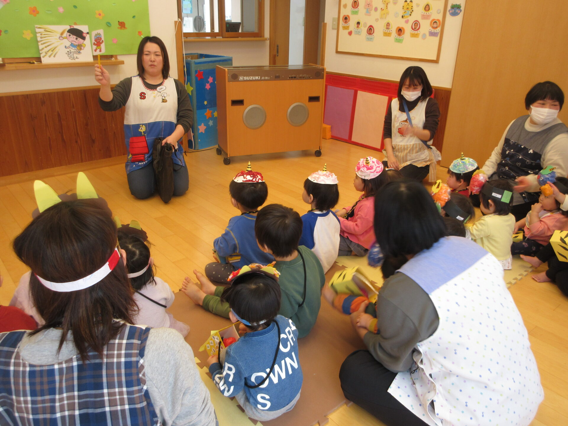 - 紙芝居「豆まきまかせて」