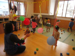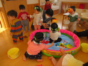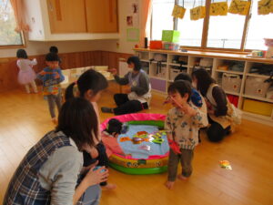 ホールでの会の後は…お部屋に設けた遊びのコーナーで